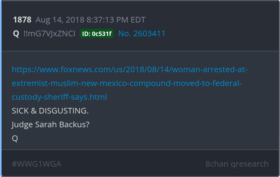 SICK & DISGUSTING. https://www.foxnews.com/us/2018/08/14/woman-arrested-at-extremist-muslim-new-mexico-compound-moved-to-federal-custody-sheriff-says.html Posted 08/13/2025 08:40 PM Categories Clips, Q