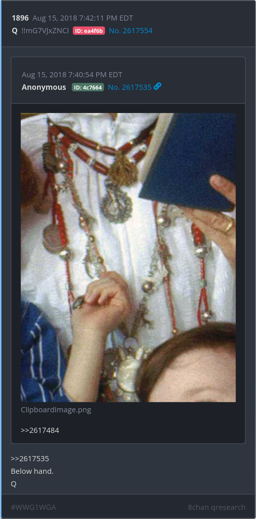 Below hand.