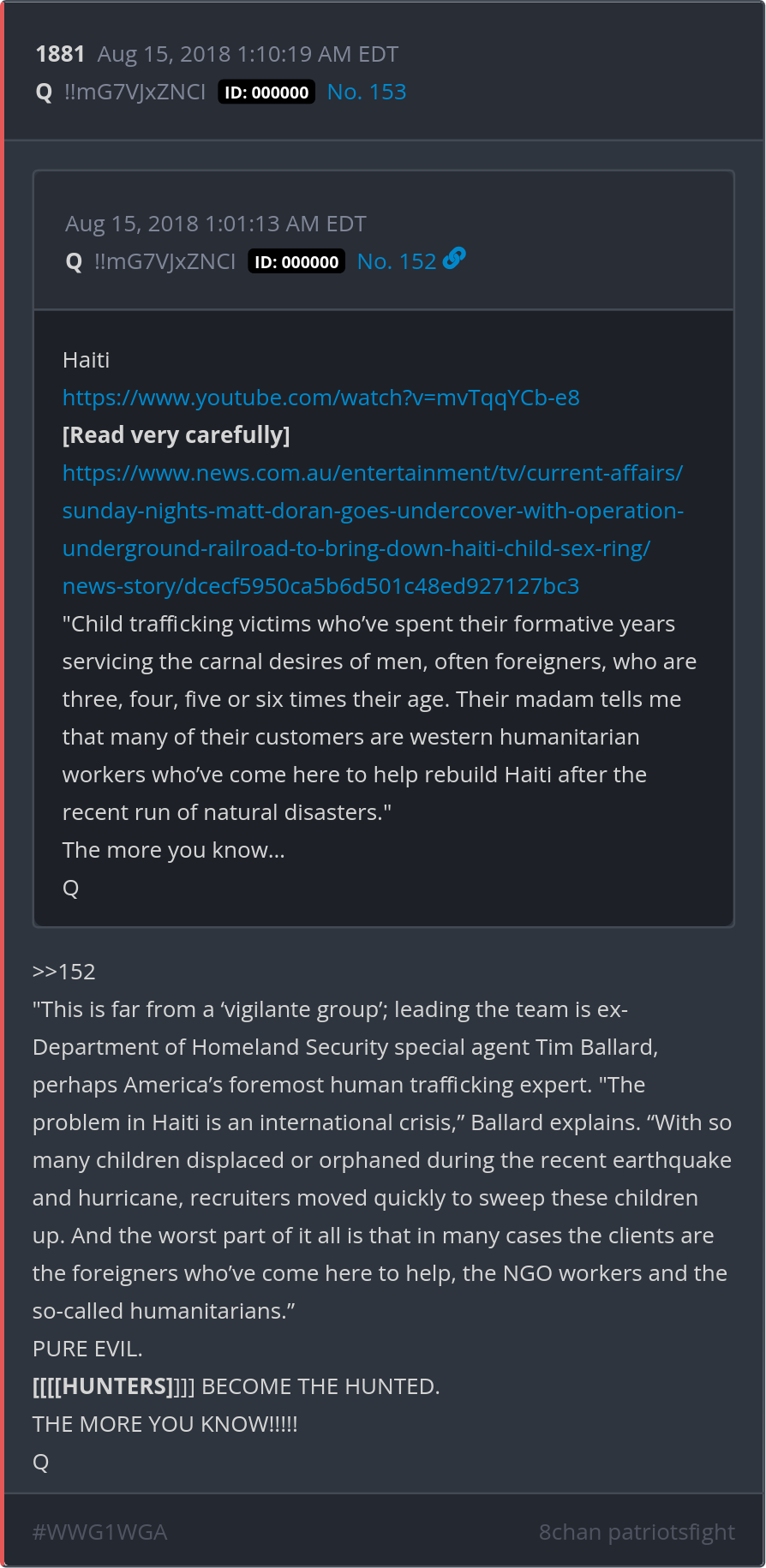 PURE EVIL. [[[[HUNTERS]]]] BECOME THE HUNTED. THE MORE YOU KNOW!!!!! https://www.youtube.com/watch?v=mvTqqYCb-e8 https://www.news.com.au/entertainment/tv/current-affairs/sunday-nights-matt-doran-goes-undercover-with-operation-underground-railroad-to-bring-down-haiti-child-sex-ring/news-story/dcecf5950ca5b6d501c48ed927127bc3 Posted 08/14/2025 08:59 PM Categories Clips, Q