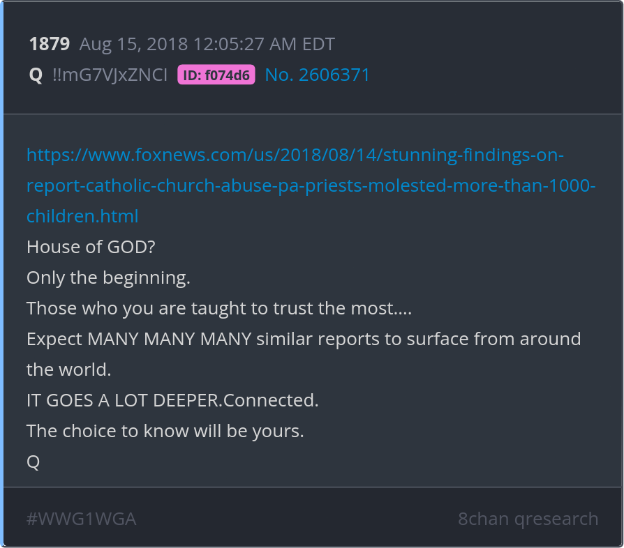 Those who you are taught to trust the most…. Expect MANY MANY MANY similar reports to surface from around the world. IT GOES A LOT DEEPER. Connected. The choice to know will be yours. https://www.foxnews.com/us/2018/08/14/stunning-findings-on-report-catholic-church-abuse-pa-priests-molested-more-than-1000-children.html Posted 08/14/2025 09:07 PM Categories Clips, Q