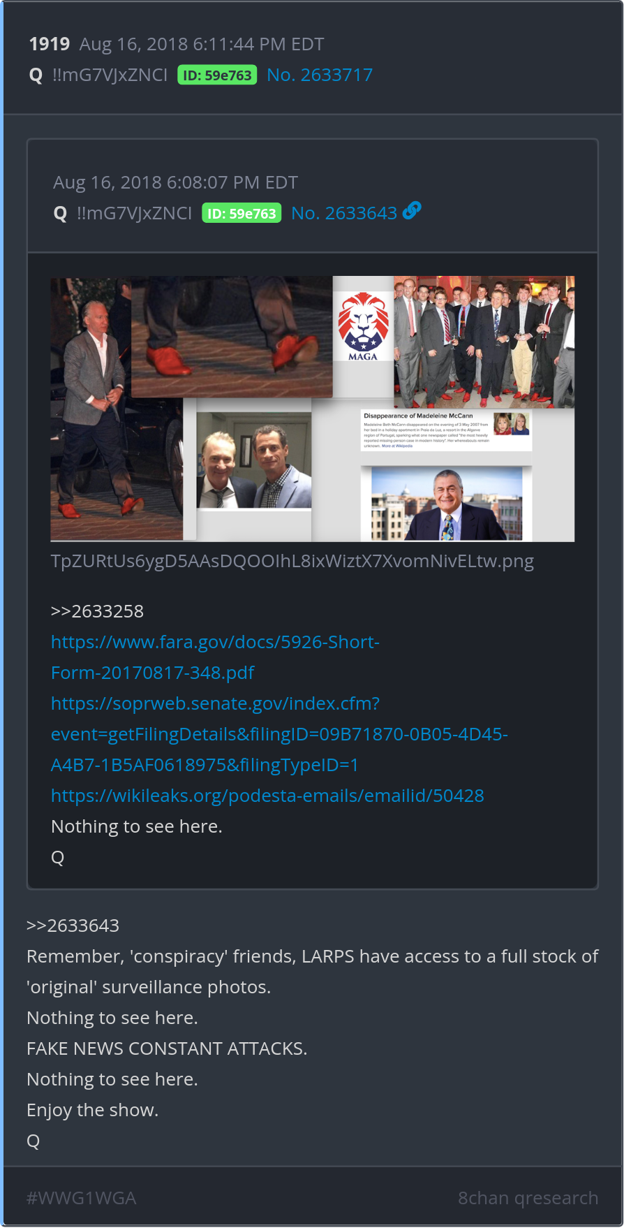 Nothing to see here. Enjoy the show. https://www.fara.gov/docs/5926-Short-Form-20170817-348.pdf https://soprweb.senate.gov/index.cfm?event=getFilingDetails&filingID=09B71870-0B05-4D45-A4B7-1B5AF0618975&filingTypeID=1 https://wikileaks.org/podesta-emails/emailid/50428 Posted 08/15/2025 08:29 PM Categories Clips, Q