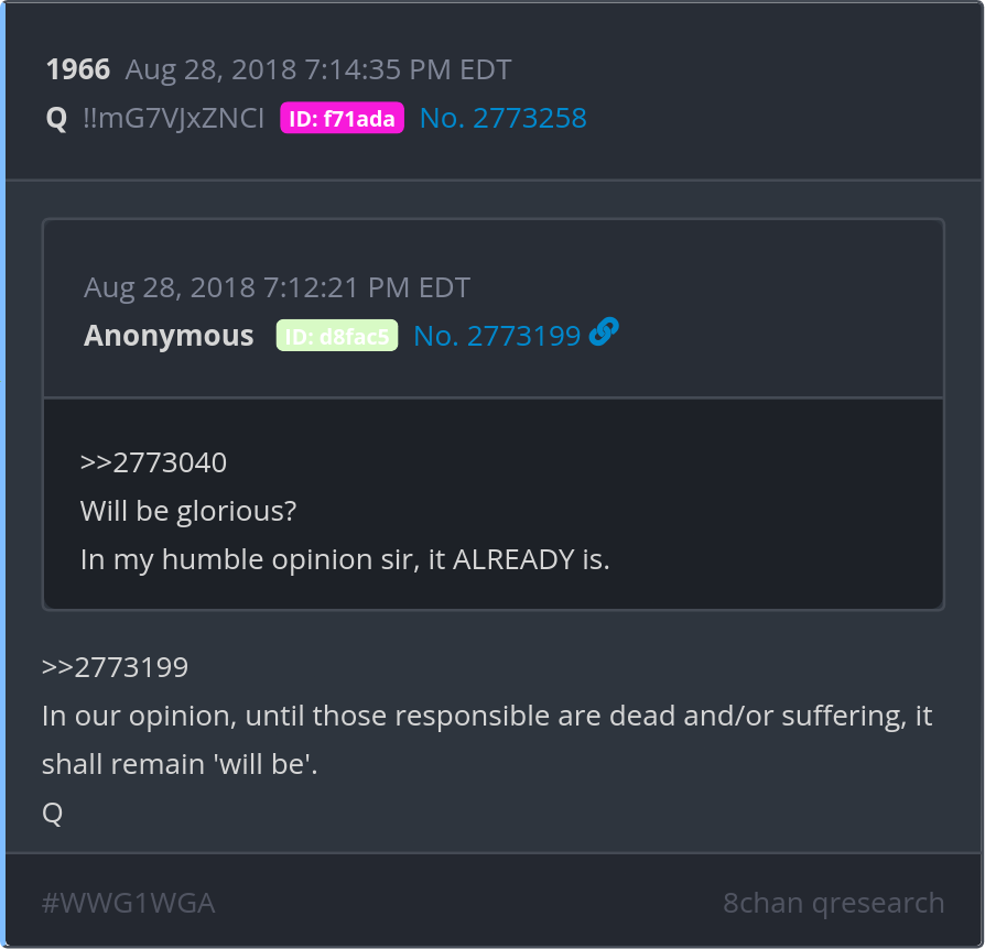 In our opinion, until those responsible are dead and/or suffering, it shall remain 'will be'. Posted 08/27/2025 08:00 PM Categories Clips, Q
