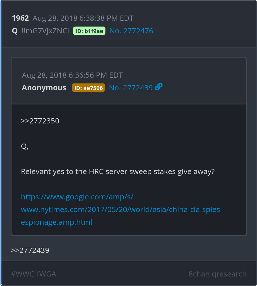 Relevant yes to the HRC server sweep stakes give away? https://www.google.com/amp/s/www.nytimes.com/2017/05/20/world/asia/china-cia-spies-espionage.amp.html Posted 08/27/2025 08:07 PM Categories Clips, Q