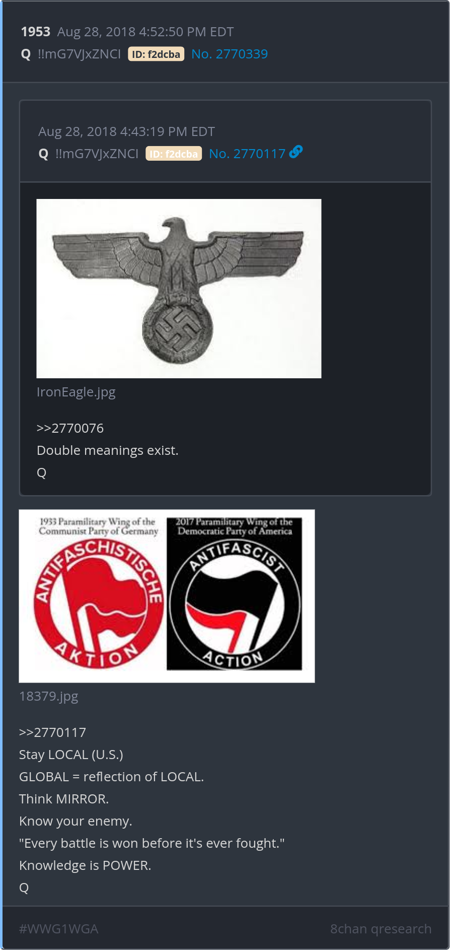 Stay LOCAL (U.S.) GLOBAL = reflection of LOCAL. Think MIRROR. Know your enemy. "Every battle is won before it's ever fought." Knowledge is POWER. Posted 08/27/2025 08:16 PM Categories Clips, Q