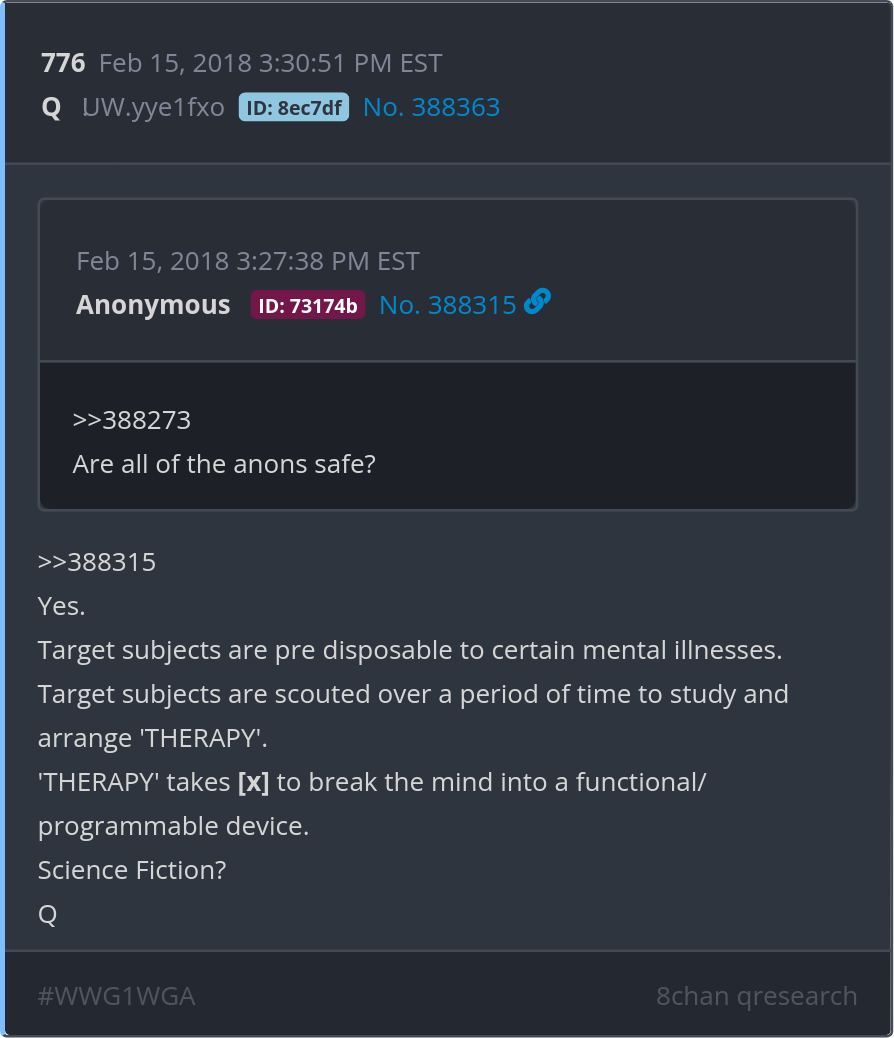 Target subjects are scouted over a period of time to study and arrange 'THERAPY'. 'THERAPY' takes [x] to break the mind into a functional/programmable device. Science Fiction? Posted 08/28/2025 02:40 PM Categories Clips, Q