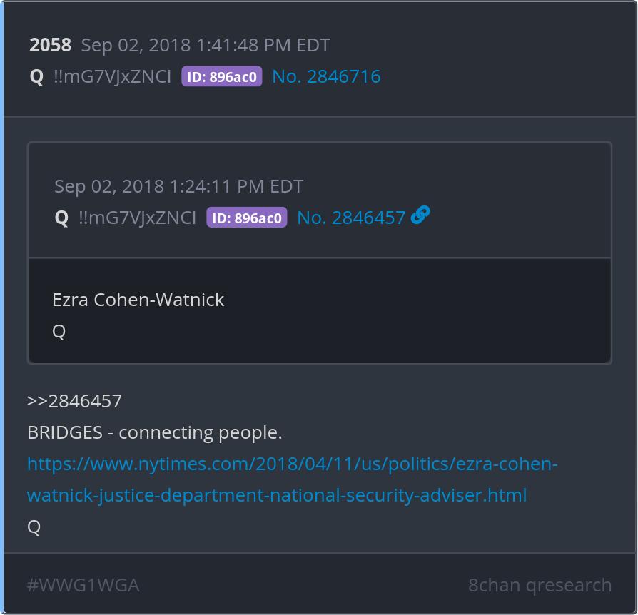 BRIDGES - connecting people. https://www.nytimes.com/2018/04/11/us/politics/ezra-cohen-watnick-justice-department-national-security-adviser.html Posted 09/01/2025 09:19 PM Categories Clips, Q