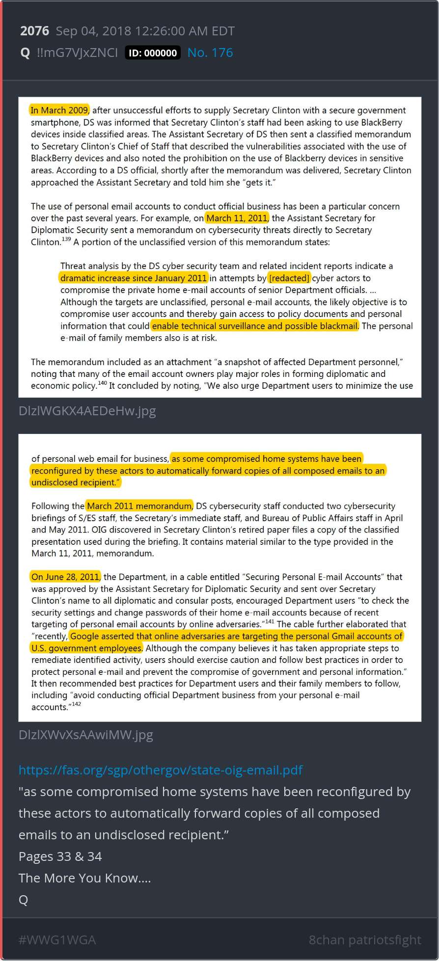 "as some compromised home systems have been reconfigured by these actors to automatically forward copies of all composed emails to an undisclosed recipient.” Pages 33 & 34 The More You Know…. https://fas.org/sgp/othergov/state-oig-email.pdf Posted 09/04/2025 08:51 AM Categories Clips, Q
