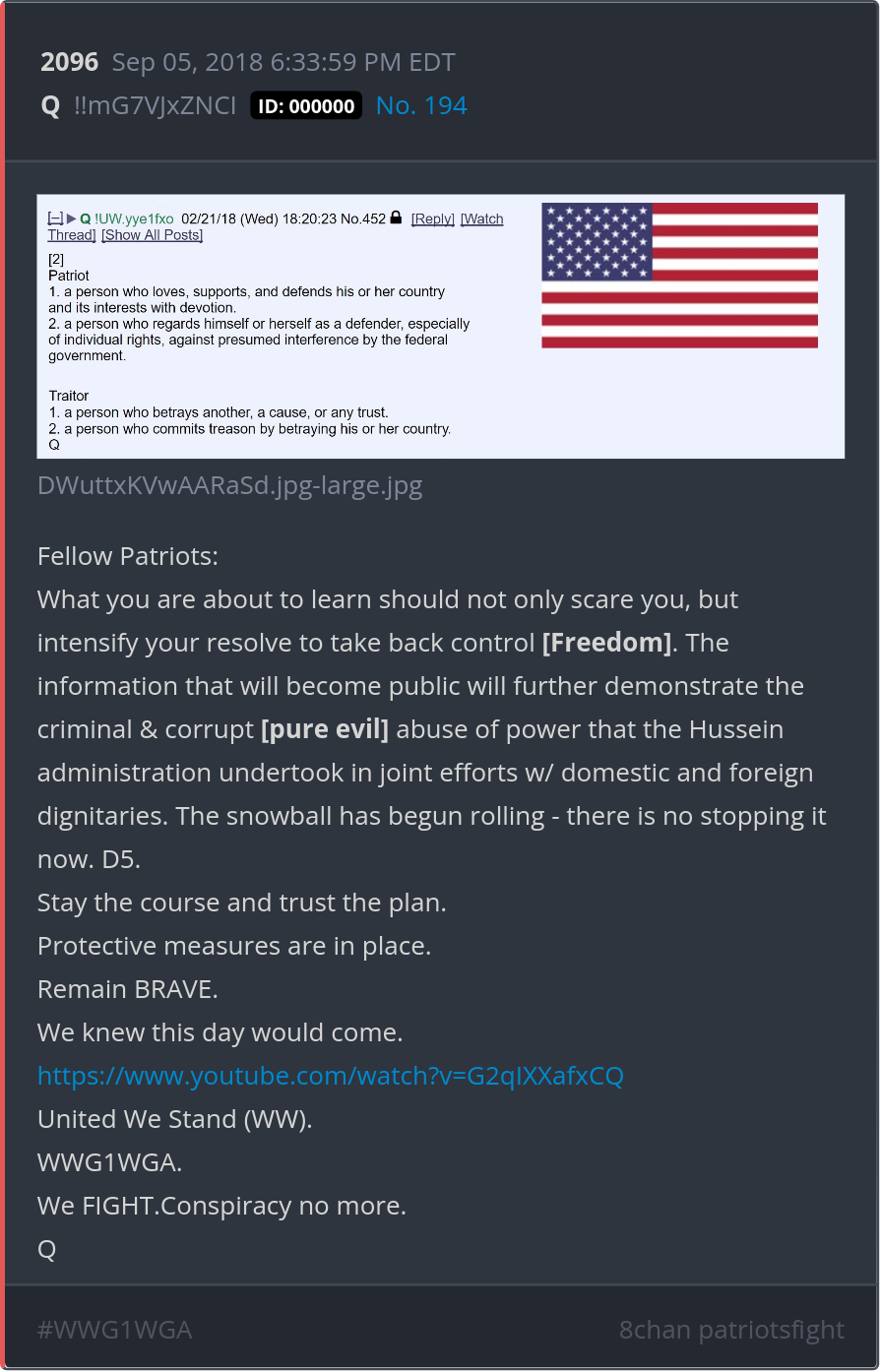 We knew this day would come. We FIGHT.Conspiracy no more. https://www.youtube.com/watch?v=G2qIXXafxCQ Posted 09/04/2025 08:37 PM Categories Clips, Q
