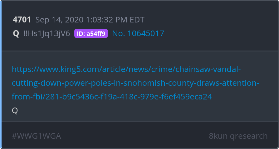 https://www.king5.com/article/news/crime/chainsaw-vandal-cutting-down-power-poles-in-snohomish-county-draws-attention-from-fbi/ https://www.king5.com/article/news/crime/chainsaw-vandal-cutting-down-power-poles-in-snohomish-county-draws-attention-from-fbi/281-b9c5436c-f19a-418c-979e-f6ef459eca24 Posted 09/13/2025 09:16 PM Categories Clips, Q