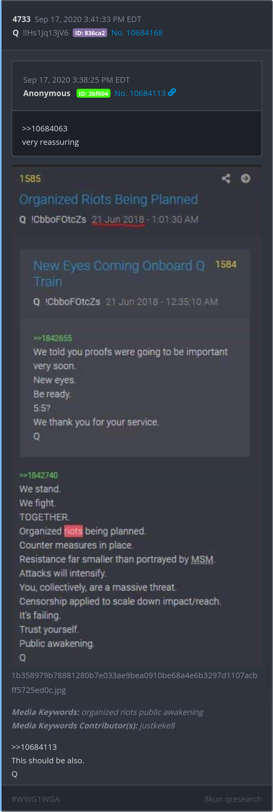 Organized riots being planned.