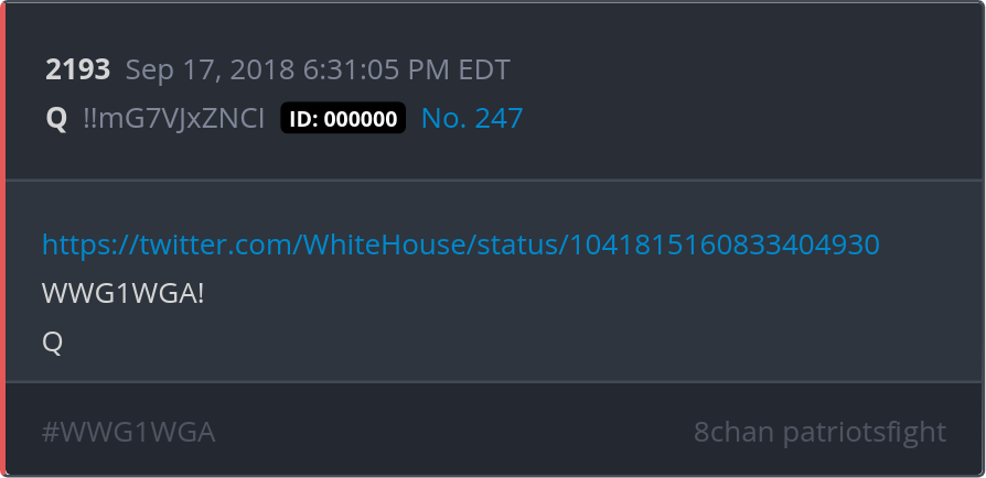 WWG1WGA! https://twitter.com/WhiteHouse/status/1041815160833404930 trget=17g>https://twitter.com/WhiteHouse/status/1041815160833404930 Posted 09/16/2025 09:46 PM Categories Clips, Q