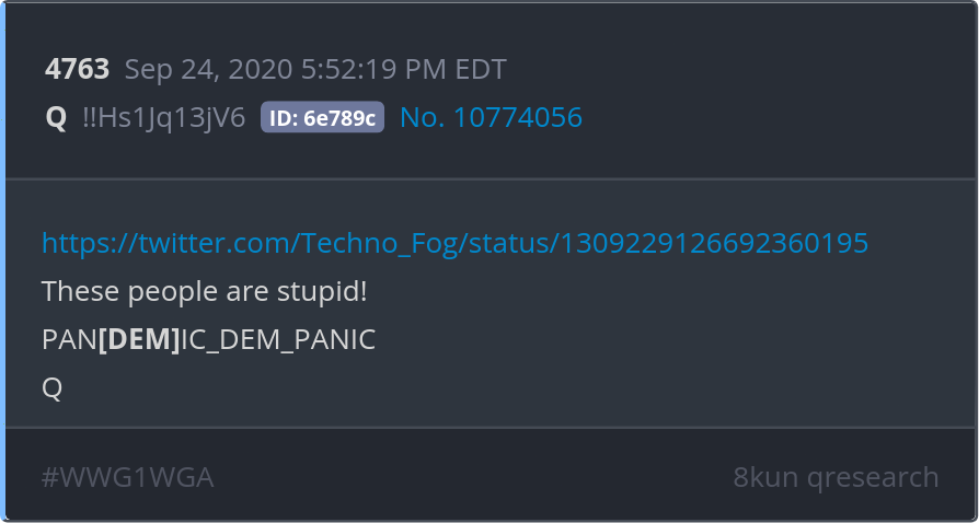 These people are stupid! PAN[DEM]IC_DEM_PANIC https://twitter.com/Techno_Fog/status/1309229126692360195 Posted 09/24/2025 08:28 AM Categories Clips, Q