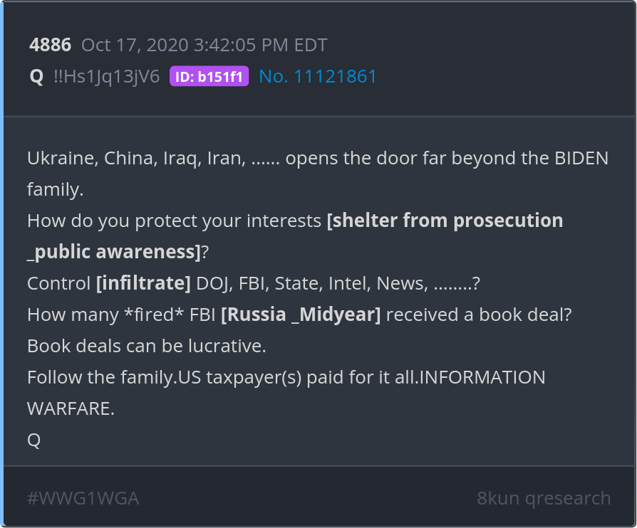 How many *fired* FBI [Russia _Midyear] received a book deal? Book deals can be lucrative. Follow the family.US taxpayer(s) paid for it all.INFORMATION WARFARE. Posted 10/16/2025 08:23 PM Categories Clips, Q