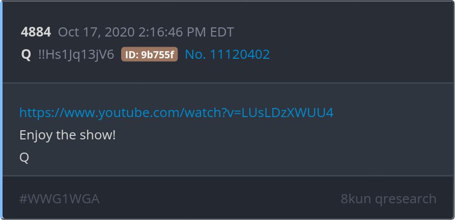 Enjoy the show! https://www.youtube.com/watch?v=LUsLDzXWUU4 Posted 10/16/2025 08:25 PM Categories Clips, Q