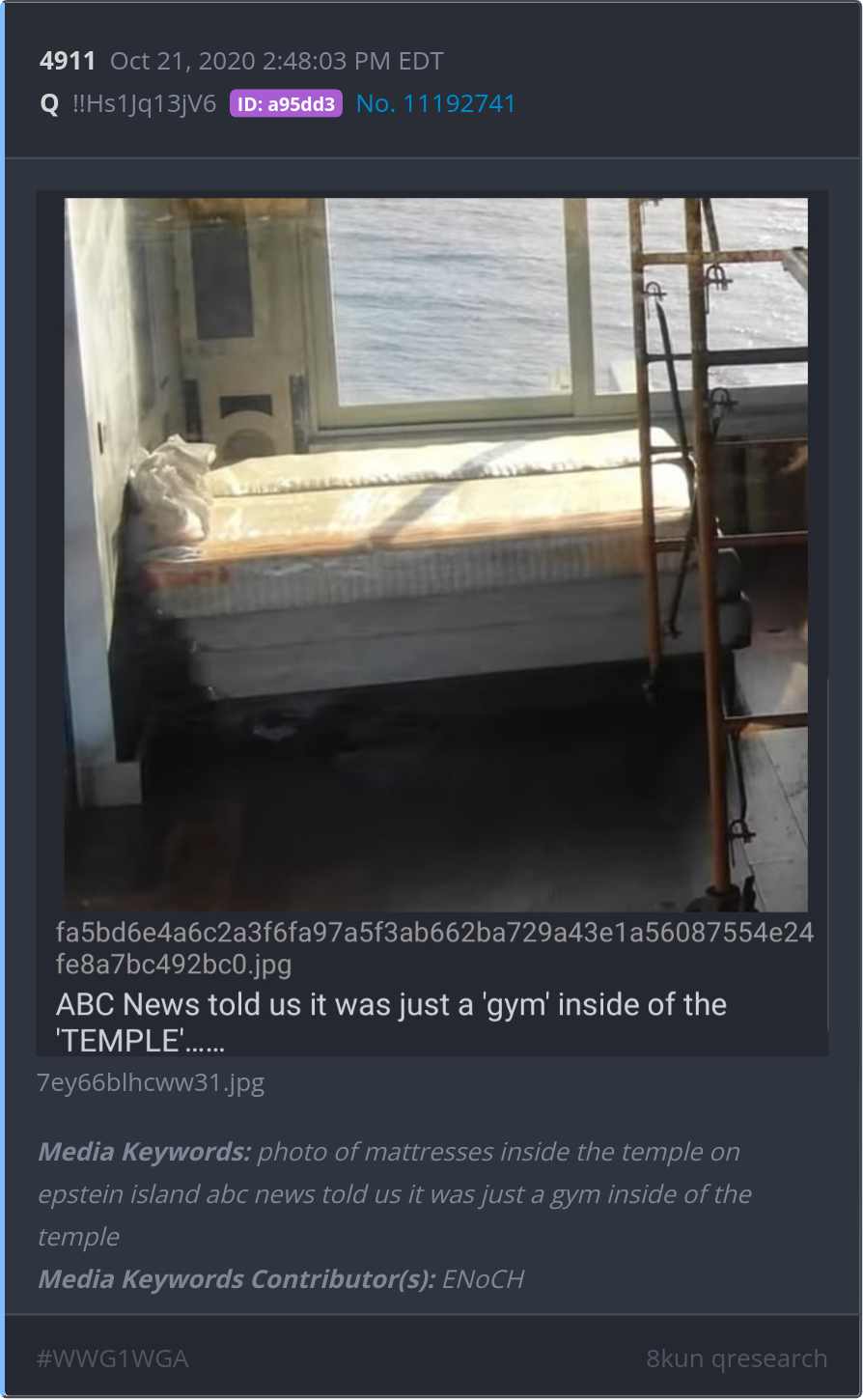 photo of mattresses inside the temple on epstein island abc news told us it was just a gym inside of the temple Posted 10/20/2025 08:16 PM Categories Clips, Q