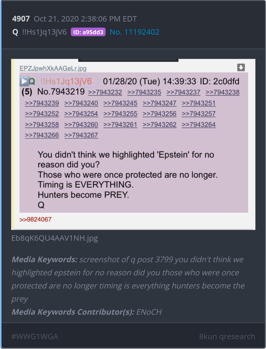 you didn't think we highlighted epstein for no reason did you those who were once protected are no longer timing is everything hunters become the prey Posted 10/20/2025 08:20 PM Categories Clips, Q