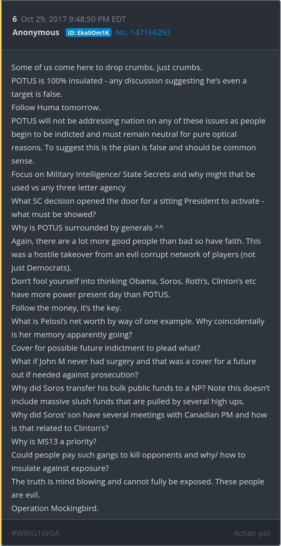 POTUS will not be addressing nation on any of these issues as people begin to be indicted and must remain neutral for pure optical reasons. Posted 10/28/2025 08:28 PM Categories Clips, Q