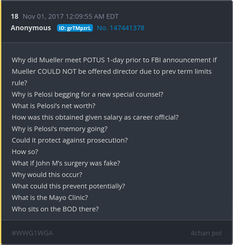 Why did Mueller meet POTUS 1-day prior to FBI announcement if Mueller COULD NOT be offered director due to prev term limits rule? Posted 10/31/2025 09:20 PM Categories Clips, Q