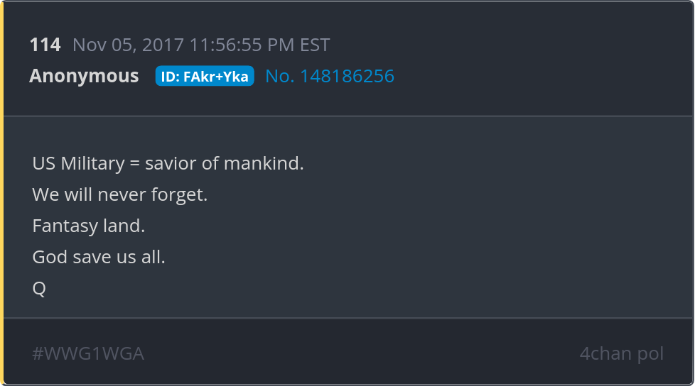 US Military = savior of mankind. We will never forget. Fantasy land. God save us all. Posted 11/04/2025 08:38 PM Categories Clips, Q