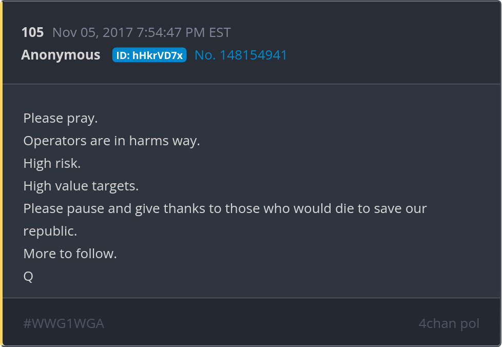 Please pray. Operators are in harms way. High risk. High value targets. Please pause and give thanks to those who would die to save our republic. Posted 11/04/2025 08:43 PM Categories Clips, Q