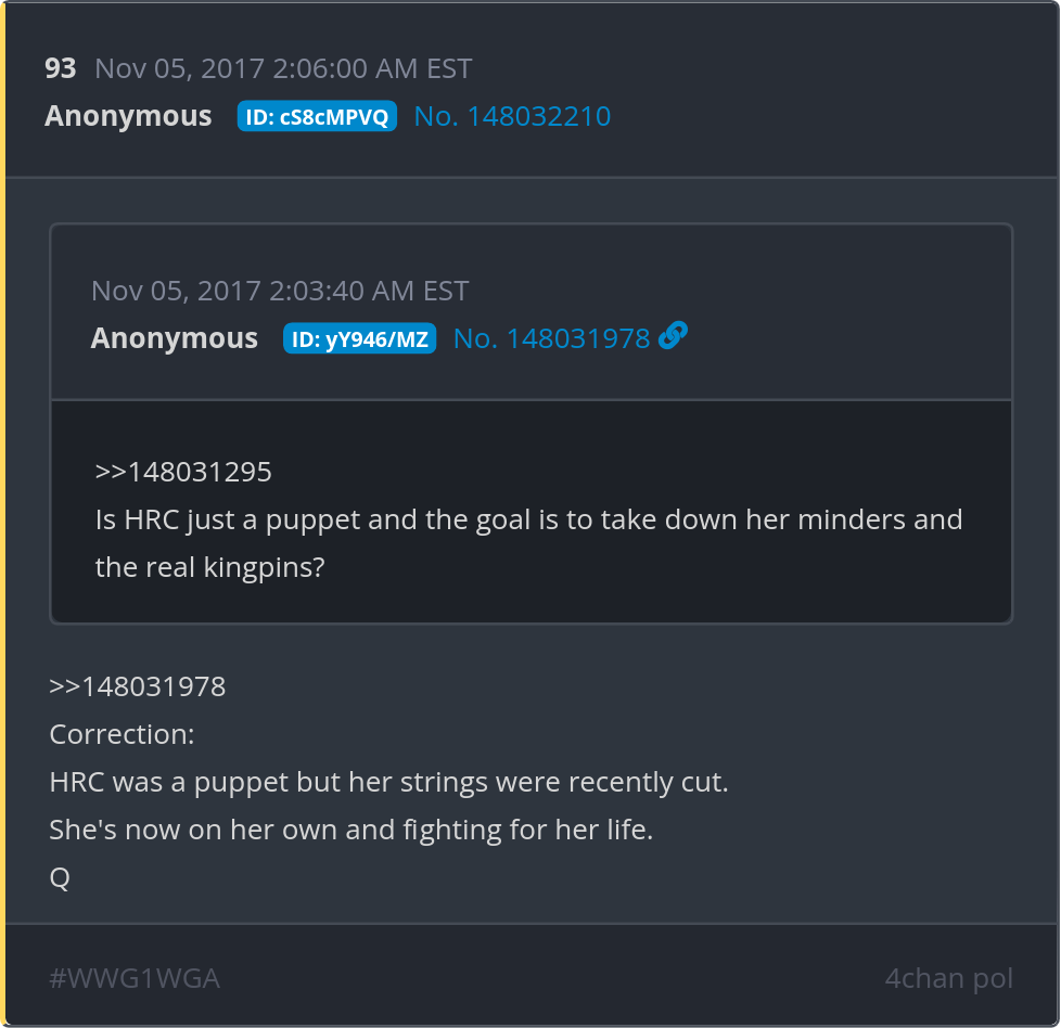 HRC was a puppet but her strings were recently cut. She's now on her own and fighting for her life. Posted 11/04/2025 08:50 PM Categories Clips, Q