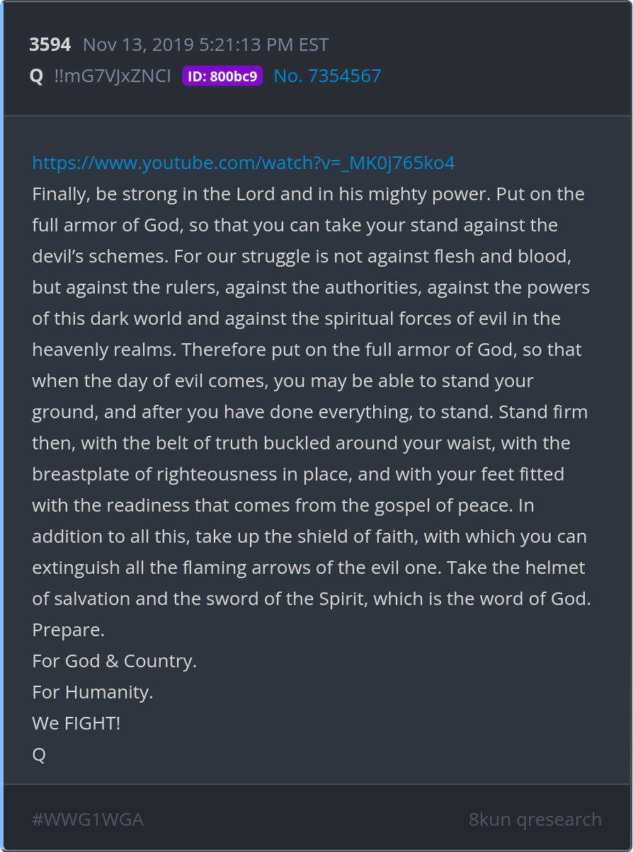 Prepare. For God & Country. For Humanity. We FIGHT! https://www.youtube.com/watch?v=_MK0j765ko4 Posted 11/12/2025 07:47 PM Categories Clips, Q