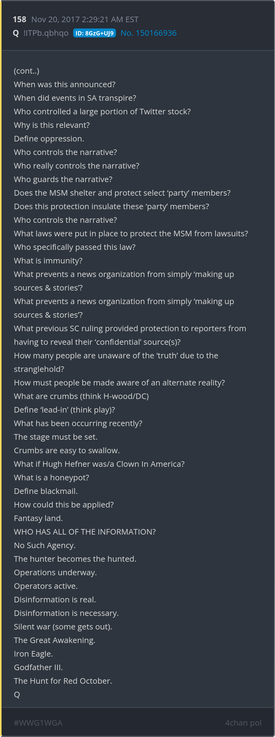 Operations underway. Operators active. Disinformation is real. Disinformation is necessary. Silent war (some gets out). Posted 11/19/2025 08:41 PM Categories Clips, Q