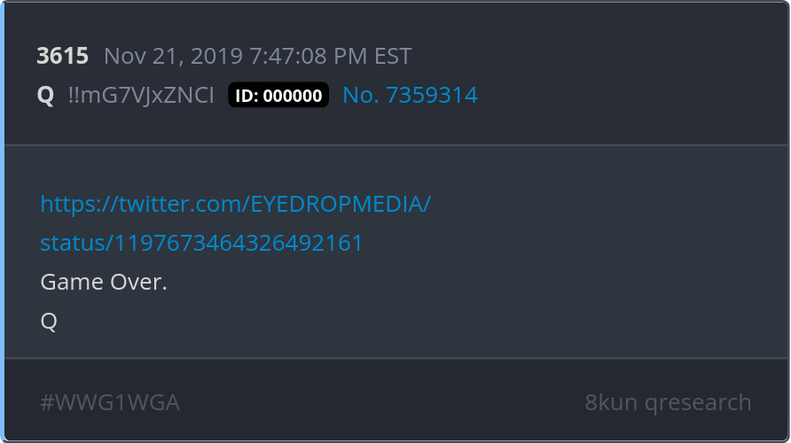 Game Over. https://twitter.com/EYEDROPMEDIA/status/1197673464326492161 Posted 11/20/2025 08:01 PM Categories Clips, Q