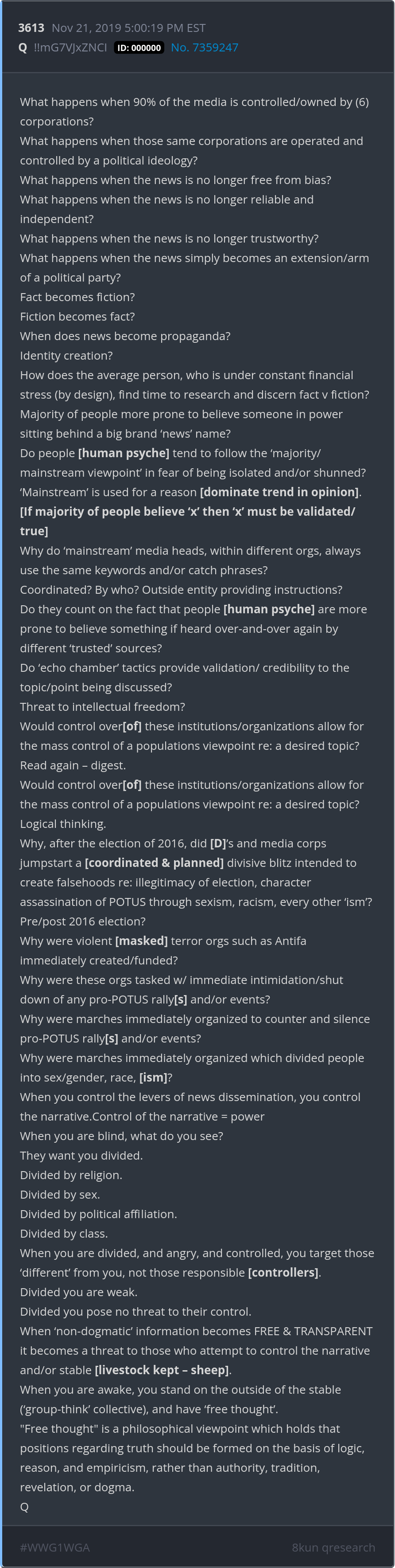 What happens when 90% of the media is controlled/owned by (6) corporations? What happens when those same corporations are operated and controlled by a political ideology? Posted 11/20/2025 08:02 PM Categories Clips, Q