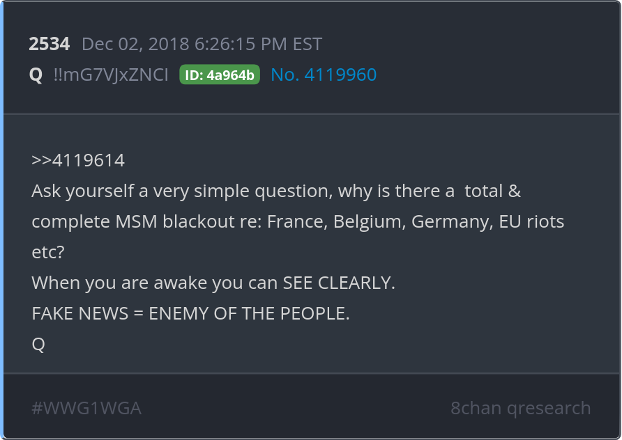 When you are awake you can SEE CLEARLY. FAKE NEWS = ENEMY OF THE PEOPLE. Posted 12/01/2025 08:01 PM Categories Clips, Q