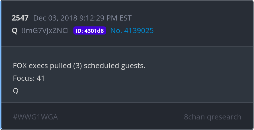 FOX execs pulled (3) scheduled guests. Focus: 41