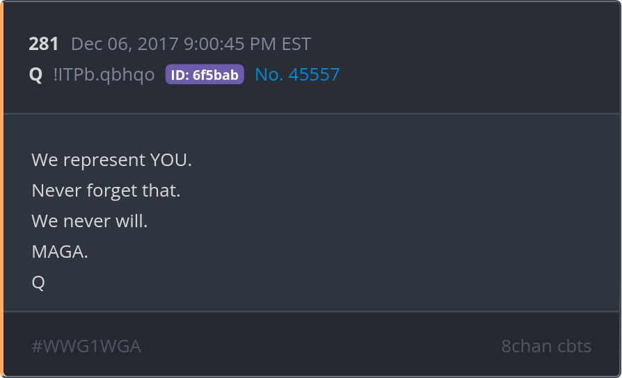 We represent YOU. Never forget that. We never will. MAGA. Posted 12/05/2025 08:52 PM Categories Clips, Q