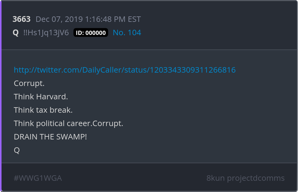 Corrupt. Think Harvard. Think tax break. Think political career.Corrupt. DRAIN THE SWAMP! https://twitter.com/DailyCaller/status/1203343309311266816 Posted 12/06/2025 07:51 PM Categories Clips, Q