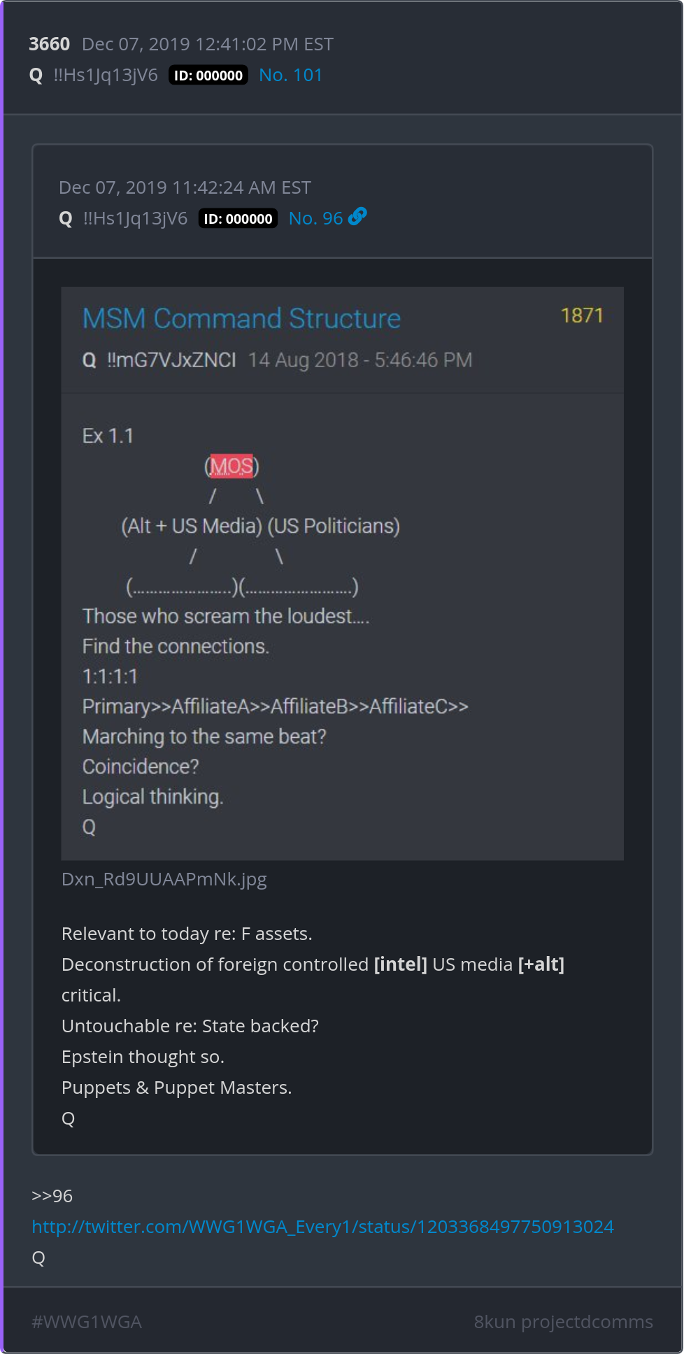 Deconstruction of foreign controlled [intel] US media [+alt] critical. Untouchable re: State backed? Epstein thought so. Puppets & Puppet Masters. https://twitter.com/WWG1WGA_Every1/status/1203368497750913024 Posted 12/06/2025 07:55 PM Categories Clips, Q
