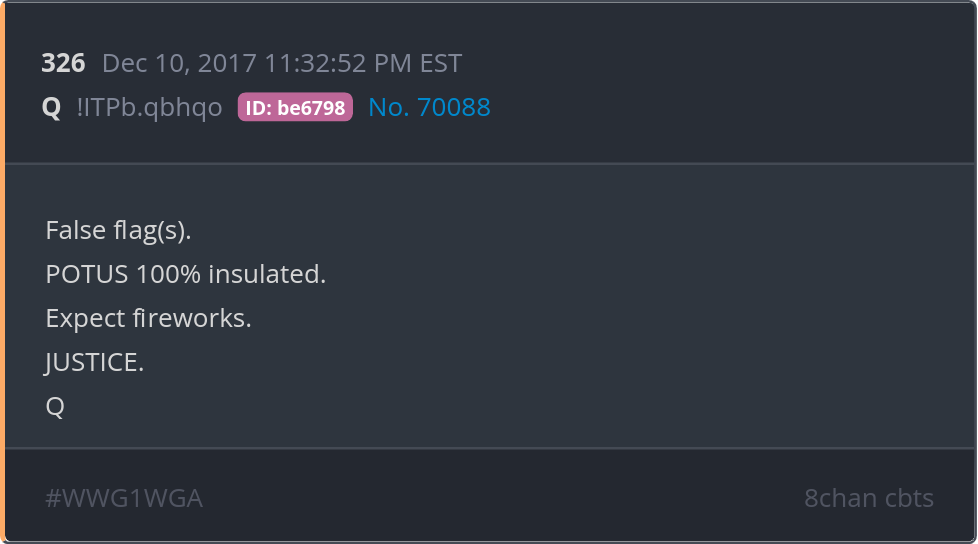 False flag(s). POTUS 100% insulated. Expect fireworks. JUSTICE. Posted 12/09/2025 09:05 PM Categories Clips, Q