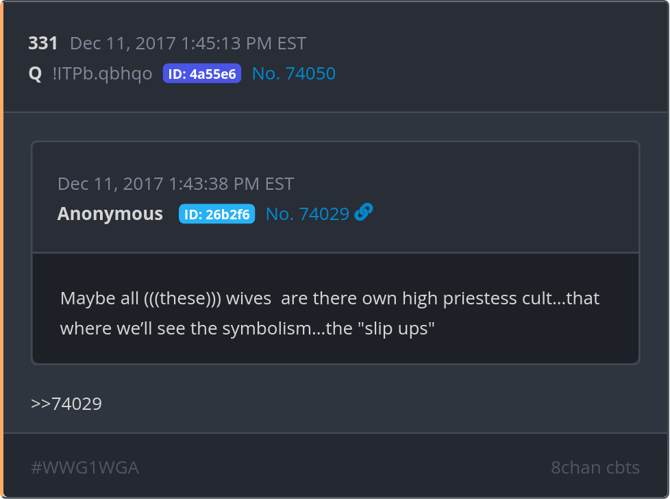 Maybe all (((these))) wives are there own high priestess cult…that where we’ll see the symbolism…the "slip ups" Posted 12/10/2025 08:56 PM Categories Clips, Q