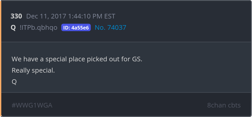 We have a special place picked out for GS. Really special. Posted 12/10/2025 08:56 PM Categories Clips, Q