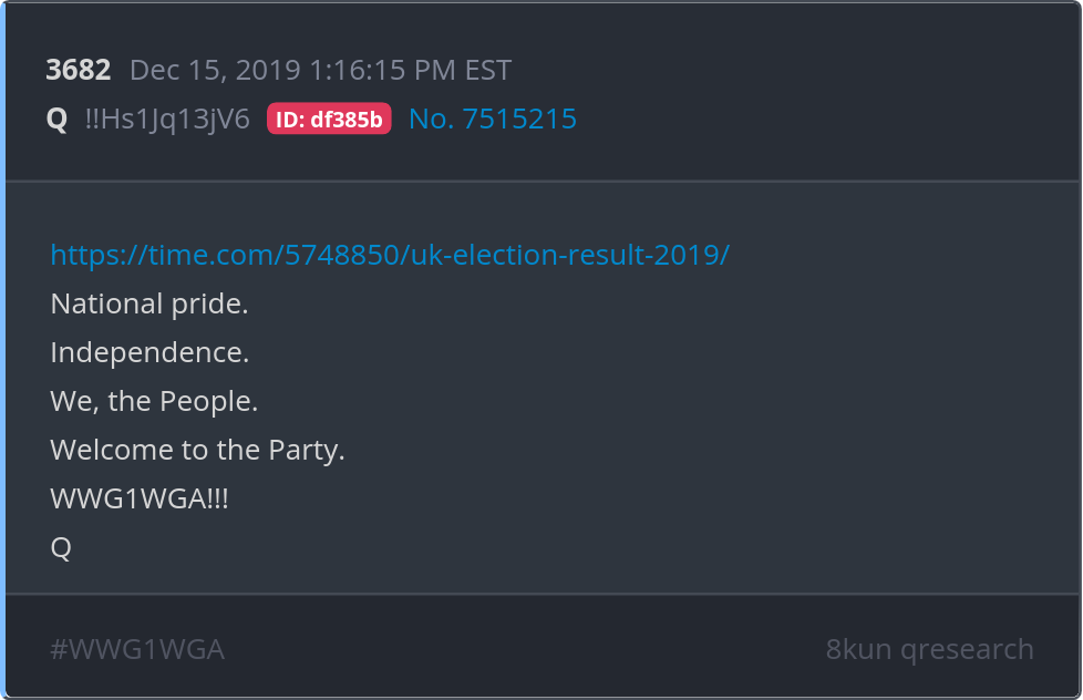 National pride. Independence. We, the People. Welcome to the Party. WWG1WGA!!! https://time.com/5748850/uk-election-result-2019/ Posted 12/14/2025 08:39 PM Categories Clips, Q