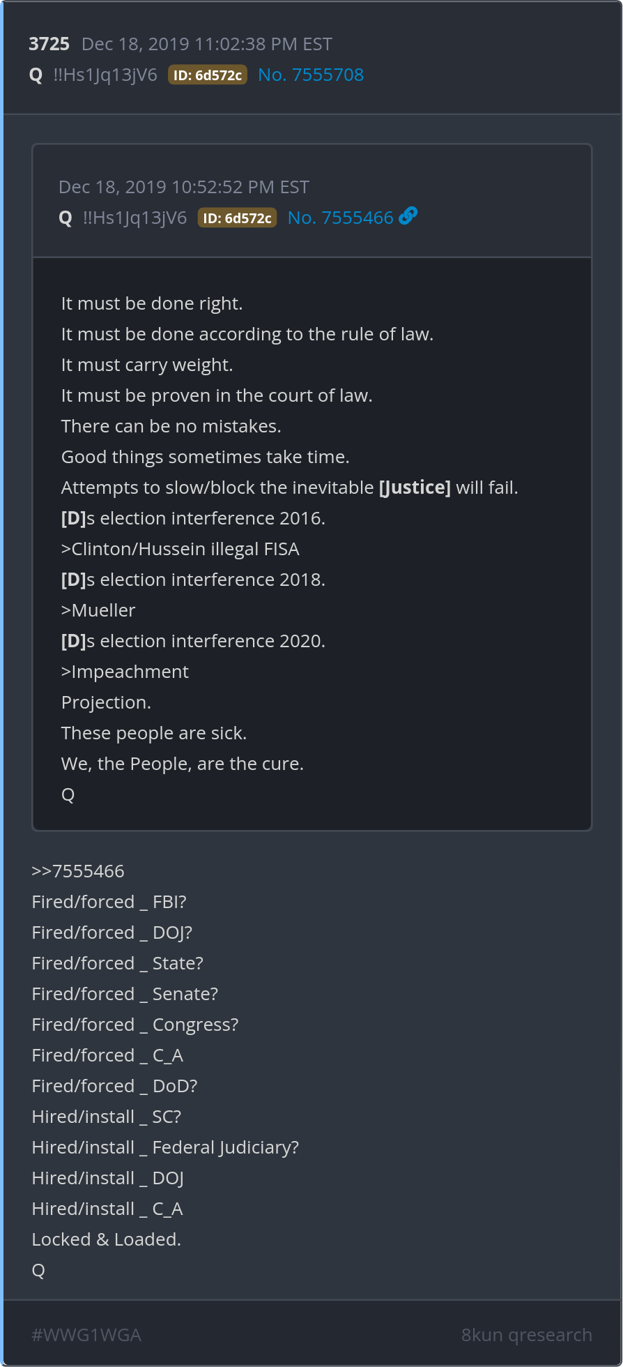 It must be done right. It must be done according to the rule of law. It must carry weight. It must be proven in the court of law. There can be no mistakes. Posted 12/17/2025 07:58 PM Categories Clips, Q