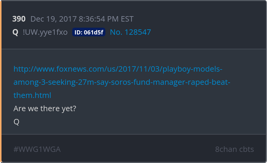 Are we there yet? http://www.foxnews.com/us/2017/11/03/playboy-models-among-3-seeking-27m-say-soros-fund-manager-raped-beat-them.html Posted 12/18/2025 08:07 PM Categories Clips, Q