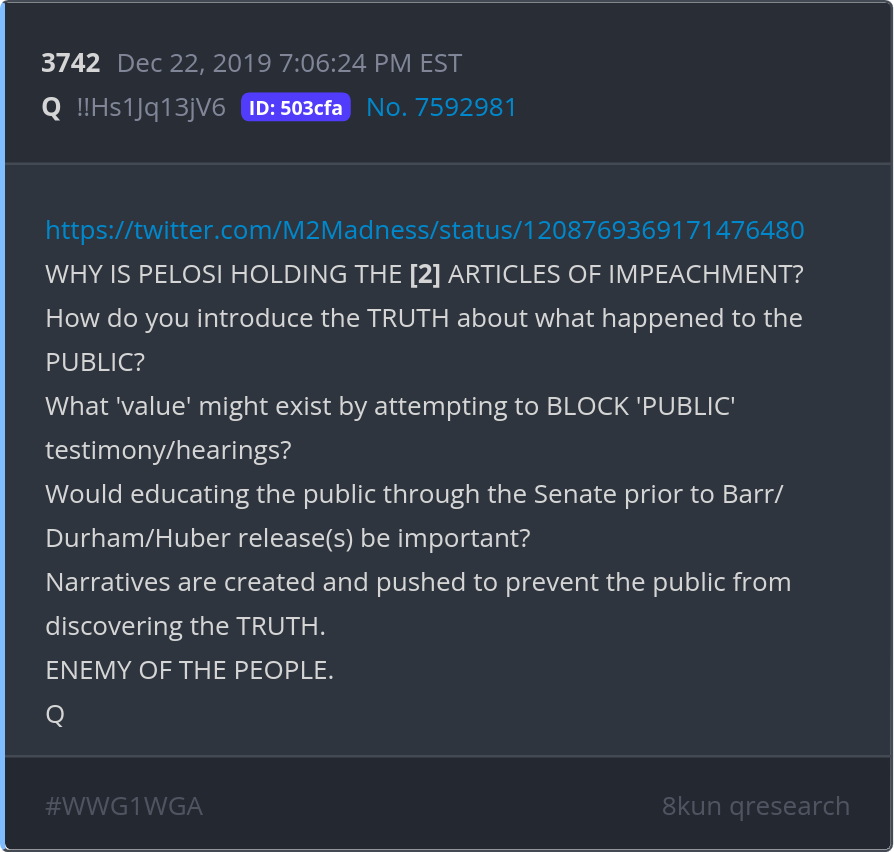 Narratives are created and pushed to prevent the public from discovering the TRUTH. ENEMY OF THE PEOPLE. https://twitter.com/M2Madness/status/1208769369171476480 Posted 12/21/2025 08:21 PM Categories Clips, Q