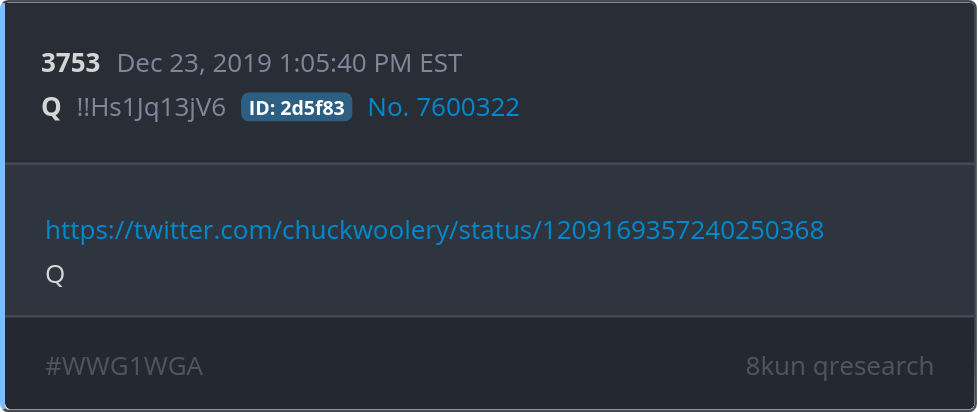 https://twitter.com/chuckwoolery/status/1209169357240250368 https://twitter.com/chuckwoolery/status/1209169357240250368 Posted 12/22/2025 08:09 PM Categories Clips, Q