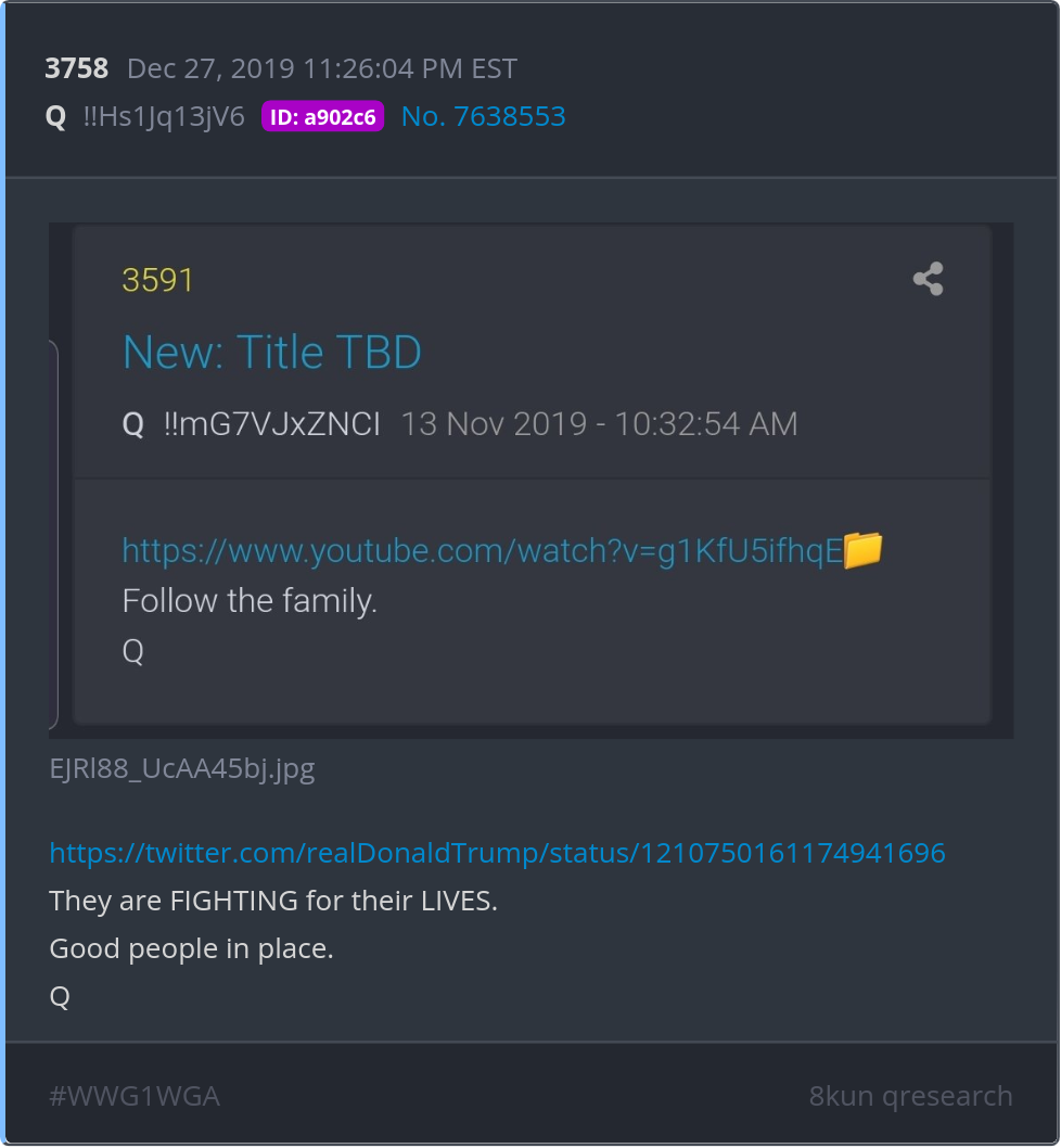 They are FIGHTING for their LIVES. Good people in place. https://twitter.com/realDonaldTrump/status/1210750161174941696 Posted 12/26/2025 09:00 PM Categories Clips, Q