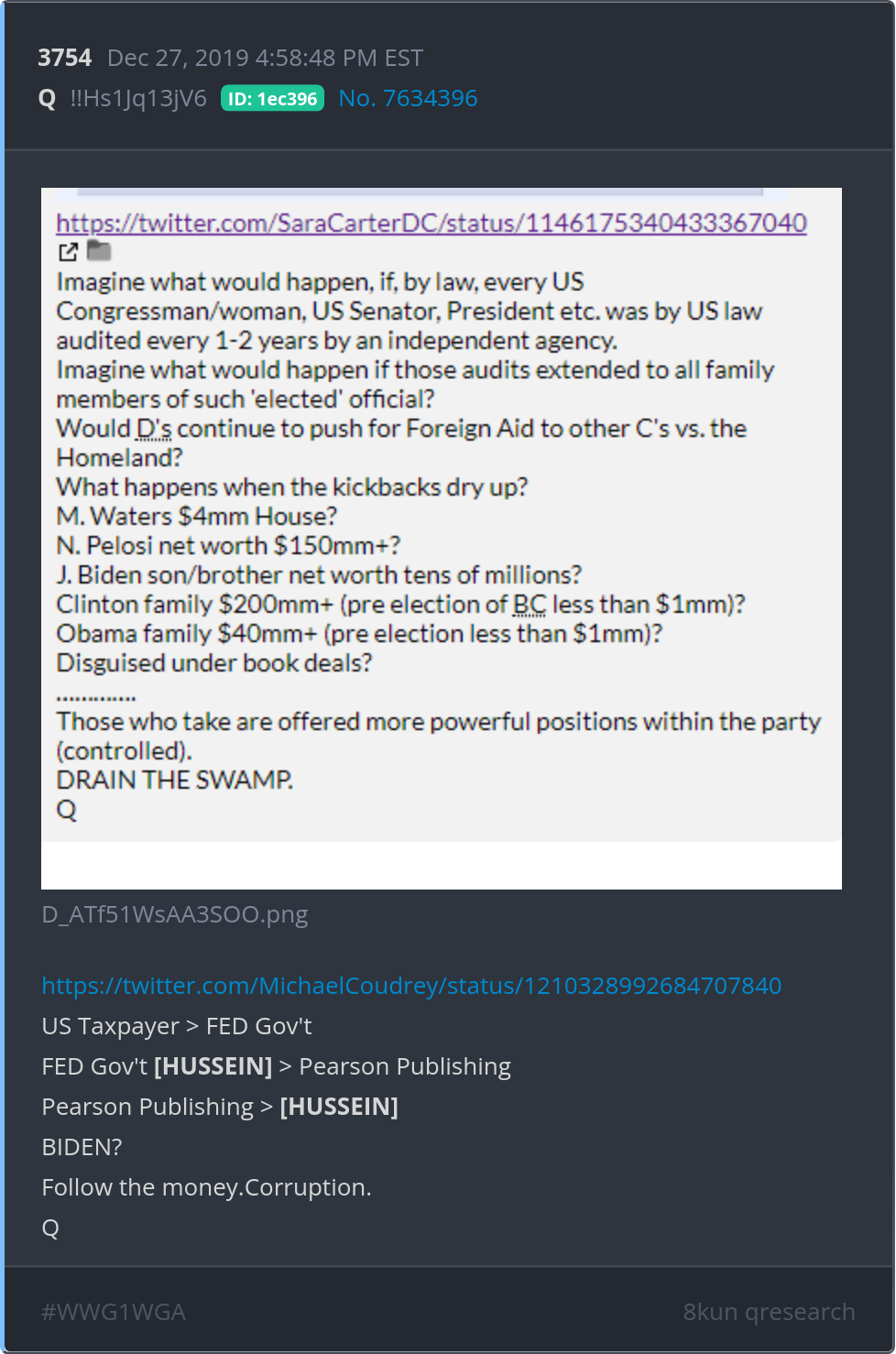 US Taxpayer > FED Gov't FED Gov't [HUSSEIN] > Pearson Publishing Pearson Publishing > [HUSSEIN] BIDEN? Follow the money.Corruption. https://twitter.com/MichaelCoudrey/status/1210328992684707840 Posted 12/26/2025 09:03 PM Categories Clips, Q