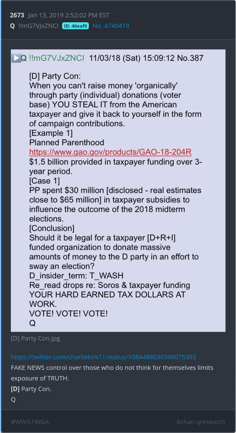 FAKE NEWS control over those who do not think for themselves limits exposure of TRUTH. [D] Party Con. https://twitter.com/charliekirk11/status/1084488036598075393 Posted 01/12/2026 08:50 PM Categories Clips, Q