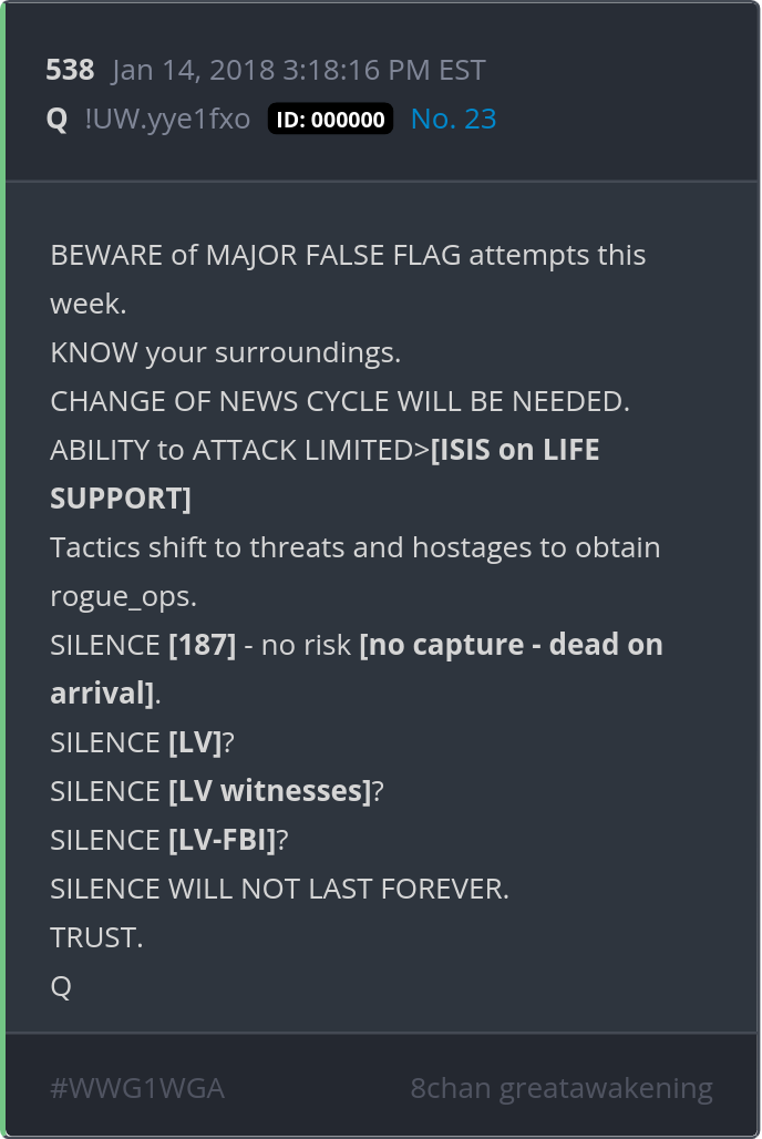 BEWARE of MAJOR FALSE FLAG attempts this week. KNOW your surroundings. CHANGE OF NEWS CYCLE WILL BE NEEDED. Posted 01/13/2026 08:06 PM Categories Clips, Q