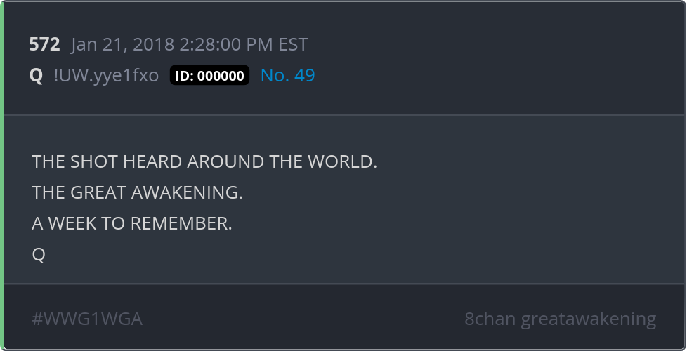 THE SHOT HEARD AROUND THE WORLD. THE GREAT AWAKENING. A WEEK TO REMEMBER. Posted 01/20/2026 08:40 PM Categories Clips, Q