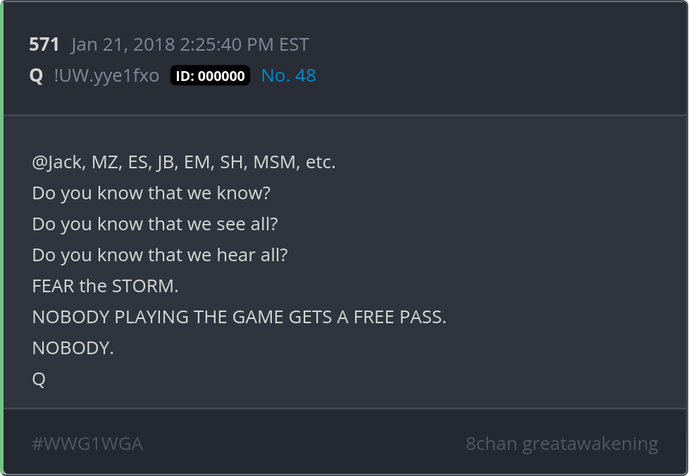 Do you know that we know? Do you know that we see all? Do you know that we hear all? FEAR the STORM. NOBODY PLAYING THE GAME GETS A FREE PASS. NOBODY. Posted 01/20/2026 08:41 PM Categories Clips, Q