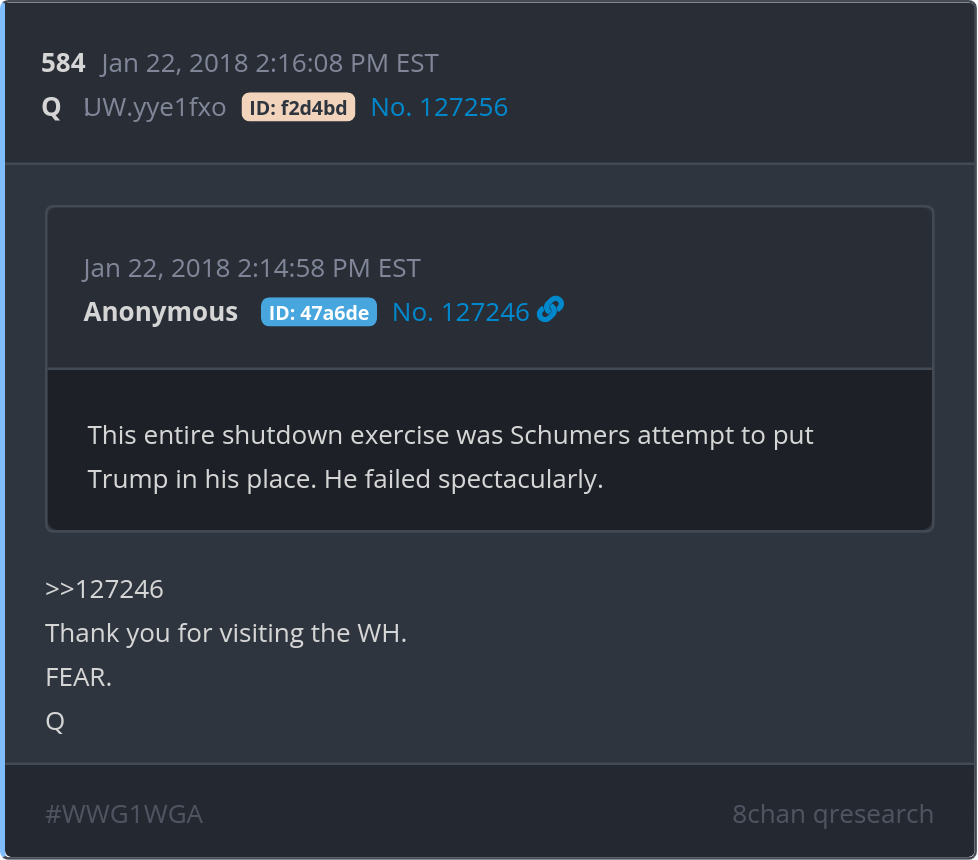 This entire shutdown exercise was Schumers attempt to put Trump in his place. He failed spectacularly. Posted 01/21/2026 08:03 PM Categories Clips, Q
