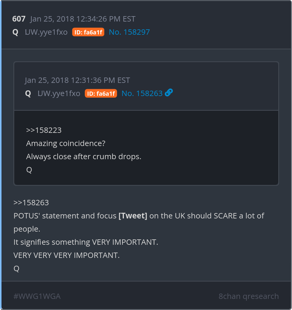 POTUS' statement and focus [Tweet] on the UK should SCARE a lot of people. It signifies something VERY IMPORTANT. VERY VERY VERY IMPORTANT. Posted 01/24/2026 08:41 PM Categories Clips, Q